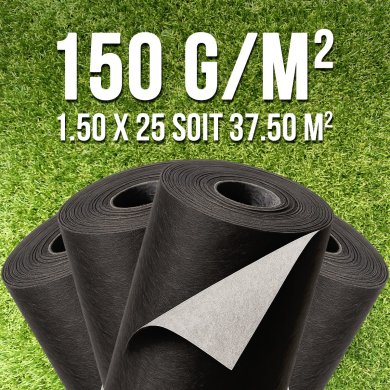 | Géotextile 150 g/m² (1,50 × 25 m = 37,5 m²) | 40,00 € | Base propre sur sol meuble + séparation + anti-repousse |